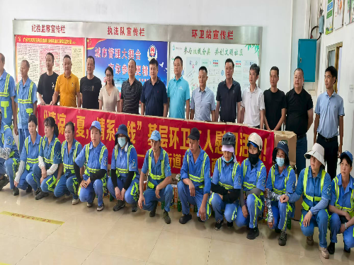7月29日下午,凤凰街道党工委书记黄沛泉、办事处主任杨泽涛带领街道商会一行慰问街道一线环卫工人,为奋战在基孔肯雅热、登革热疫情防控一线的环卫工人送去防暑降温及生活物品。