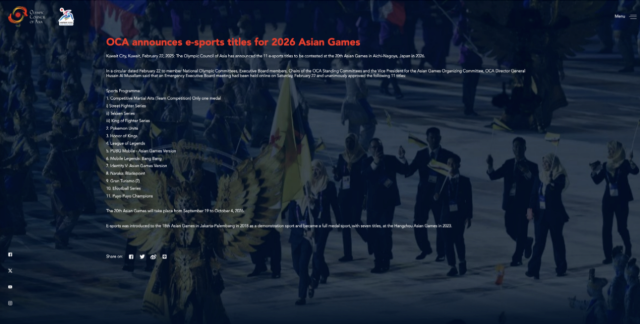 近日,亚洲奥林匹克理事会(OCA)在其官网正式发布了《2026年亚洲运动会电子竞技项目名单》,网易自研游戏《第五人格亚运版本》成功入选,成为本届亚运会唯一入选的非对称对抗类电竞项目。