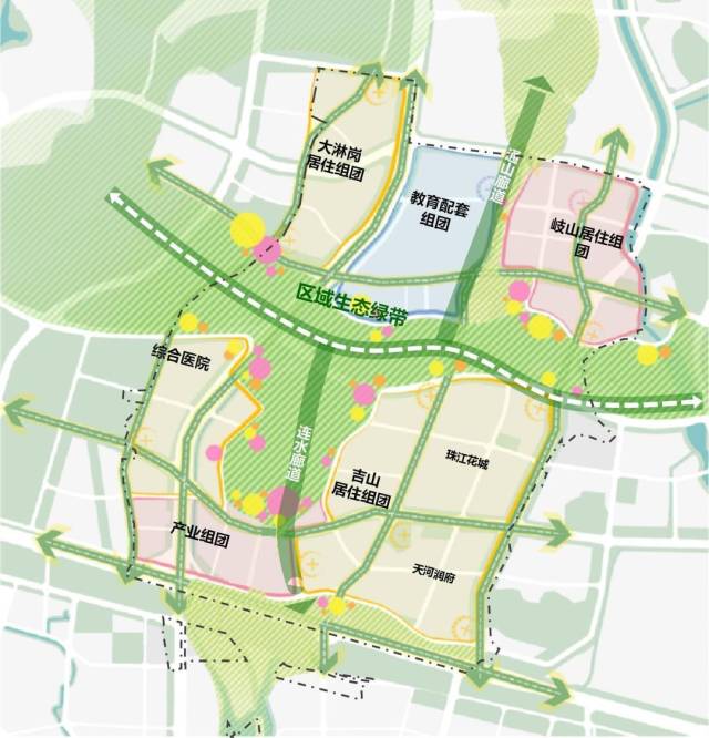 规划以建设“精品吉山”为目标,作为威尼斯人平台智谷的重要组成部分,提出三大功能定位:广深走廊科创节点、智谷山水宜居社区、珠吉历史文脉走廊。