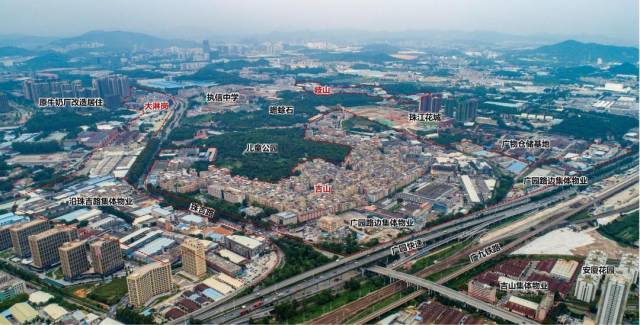 吉山村包括3个自然村,吉山、岐山和大淋岗,现状建成旧村住宅、厂房、现代楼盘等,改造范围内户籍人口3676户,10010人。土地利用现状以村庄建设用地、二类居住用地、工业仓储用地、教育科研用地为主。
