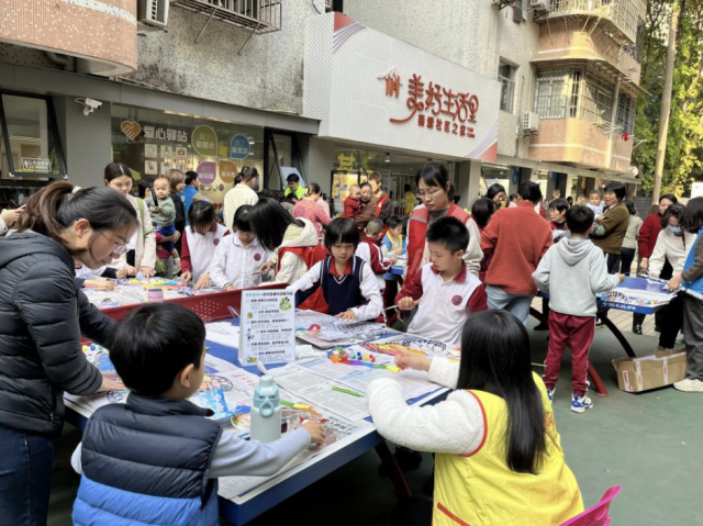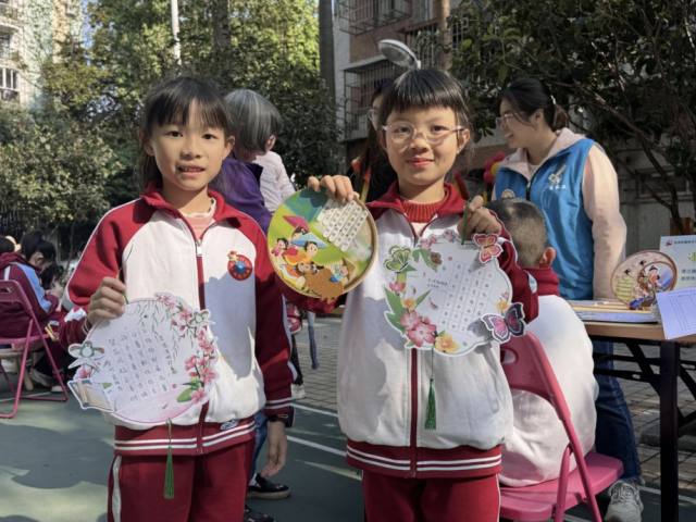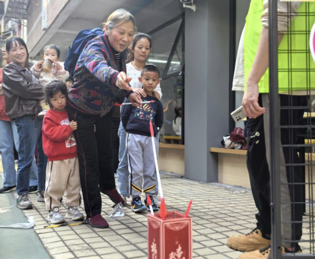 传统投壶游戏与潮玩元素碰撞出新火花,“踏青趣投壶”摊位前笑声不断。“盆景传祝福”则让亲子家庭以绿植为媒介,将写满心愿的卡片悬挂枝头,传递对生活的美好向往。最富诗意的“诗词贴贴乐”摊位,通过趣味手工的形式让居民在拼贴中邂逅杜牧的“雨纷纷”、高翥的“燕子来时新社”,传统诗词在指尖重焕生机。这些别样的摊位体验活动,让社区居民们趁着久违的明媚春光,在开心玩闹的过程中感受到了节日氛围和春的气息。