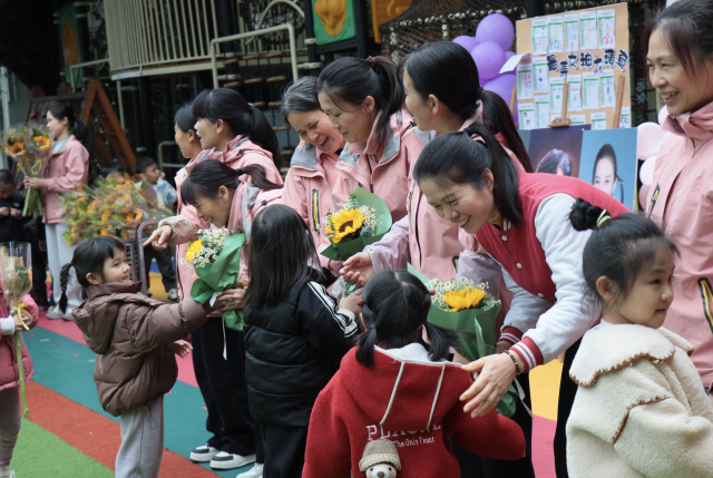 南兴社区联合童乐幼儿园举办了一场别开生面的感恩教育活动。孩子们通过艺术表演,为来自各行业的妈妈们献上了一场精彩的节目,并送上亲手制作的鲜花,用行动传承孝道文化,表达感恩之情。活动现场洋溢着温馨与感动,许多妈妈表示,这样的活动不仅增进了亲子关系,也让孩子学会了感恩与关爱。