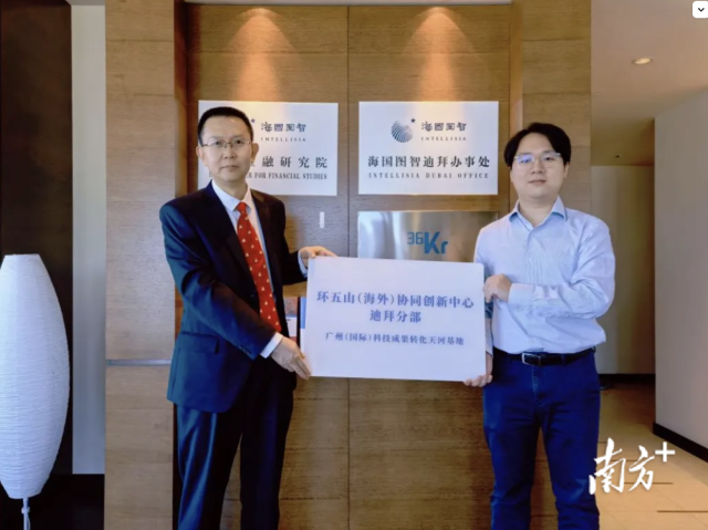 同日,环五山(海外)协同创新中心迪拜分部揭牌仪式举行。黄凯旋与张千麟共同为创新中心迪拜分部揭牌,这标志着双方在资源共享、项目合作、人才交流等方面迈出了重要一步。
