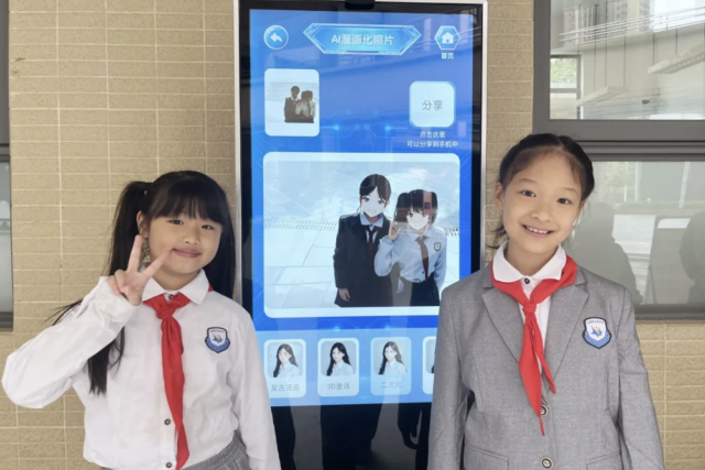 在AI对话区,同学们好奇地拿起手中的AI设备,与其进行着天马行空的对话。通过与AI互动交流,学生可以感受到生成式AI对日常生活节奏的改变,还能切实体会到它对学习和生活的积极影响。