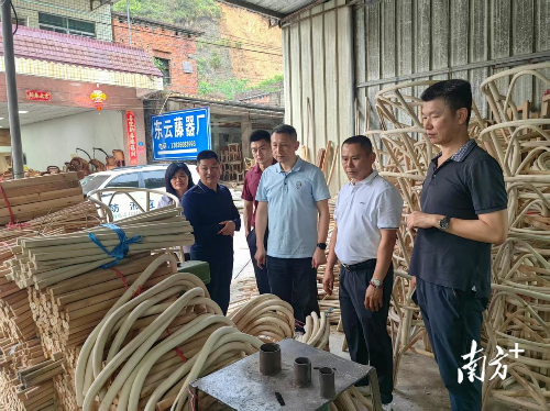 随后,调研组实地考察松陂村东云藤器厂,深入了解梅州市非遗藤艺传承发展现状。肖敏鼓励藤器厂要创新性地走出“非遗+电商”新模式,重点加强设计创新与品牌推广,探索应急物资收纳等跨界合作的可行性。