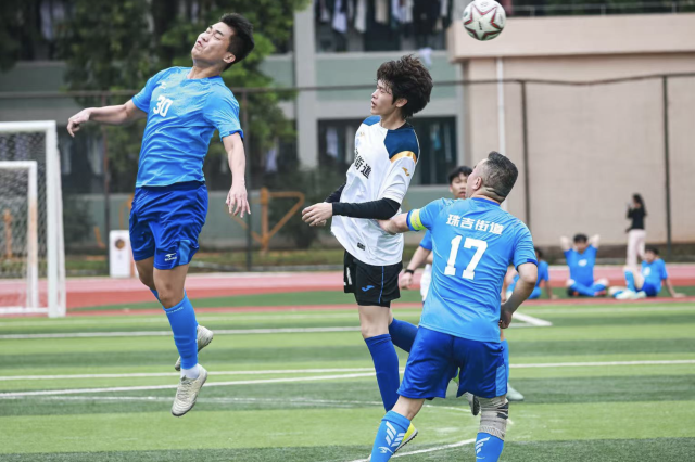 首日赛事的激情被即刻点燃。揭幕战由街道组的4支队伍在两块场地同时展开,1号场是由车陂街道队对阵新塘街道队,2号场是珠吉街道队对阵天园街道队。哨声骤响,绿茵场上即战火燎原,进攻、防守、传球、射门……球员们相互配合,用速度和激情点燃全场激情,精彩的对决赢得了在场观众的阵阵喝彩。当日下午,企业组和村居组的14支队伍也将轮番上阵,展现非凡的竞技水平,为观众献上精彩纷呈的竞技盛宴。