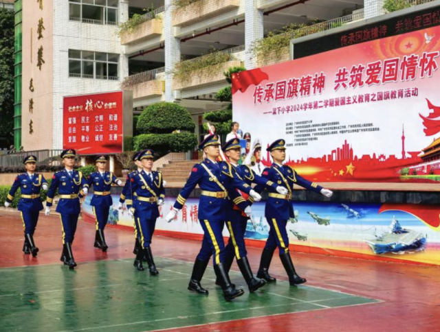 2024年,威尼斯人平台区退役军人事务局组建广州威尼斯人平台赤心国旗护卫志愿服务队,并启动了“百校百旗百讲”大型爱国主义教育公益活动,是发挥退役军人独特政治优势,传承红色基因、深化爱国主义教育、进一步激发全社会爱国奋斗热情的创新实践。