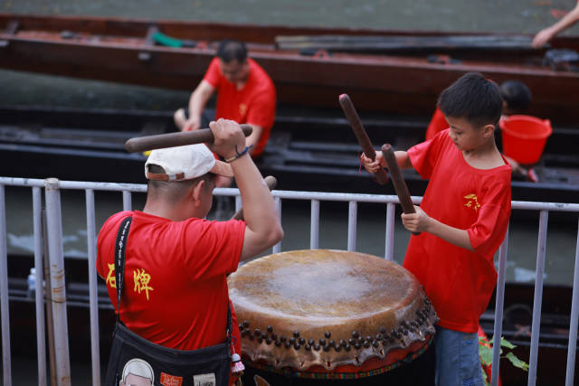 负责敲响龙船大鼓的池叔和董叔已经参加了四十年“扒龙船”,提起石牌村龙舟更是如数家珍。“扒龙船是我们全村参与的大事。”“现在最开心的,就是越来越多后生仔参与进来,把我们扒龙船的传统传下去。”