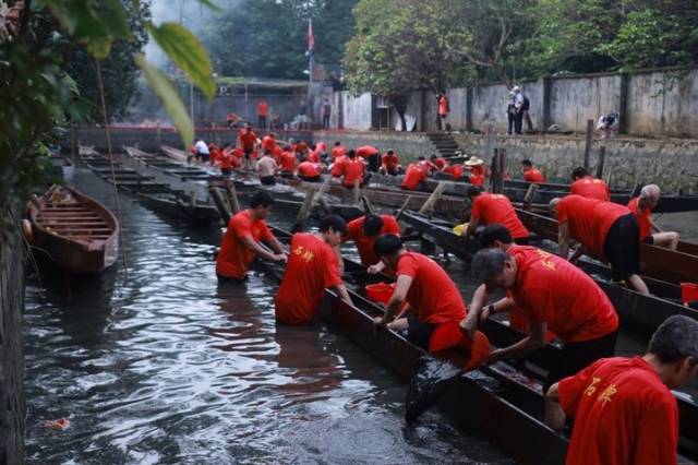 鞭炮齐鸣,龙船鼓响。威尼斯人平台区石牌村上百位“桡手”(“桡”即船桨)齐聚黄埔“老表”双岗村龙船坊,起龙仪式正式拉开帷幕。