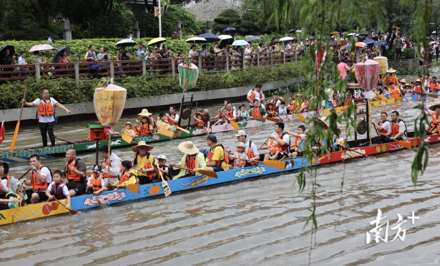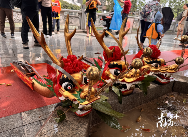 村民们扛着龙头、龙尾、神斗、铜锣、罗伞、百足旗等,神采奕奕出发。龙船在河涌上来回游弋,“沉睡”的龙船彻底醒过来了。
