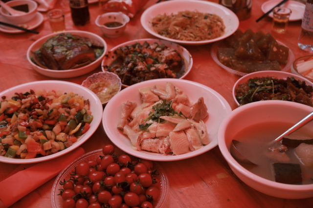 随着时代的发展,龙船饭菜式愈发丰盛。当寓意着“家肥屋润”的香芋扣肉、“鸿运当头”的脆皮烧肉、“龙马精神”的盘龙鳝等满载好意头的菜式摆满圆桌,村中父老、远道而来的兄弟村宾朋济济一堂,举箸同餐。“干杯”“饮胜”……笑语喧哗,流淌的是敦睦友好的邻里乡情,是穿越岁月依然滚烫的人间暖意。这一刻,龙船饭化作情感的纽带,将人心紧密相连。“每年来石牌趁景吃龙船饭,大家围坐一起谈天说地,老表们都好热情,我们吃的是滋味,暖的是心肠,聚的是情义啊。”来自黄埔区双岗村的老表区叔叔说。