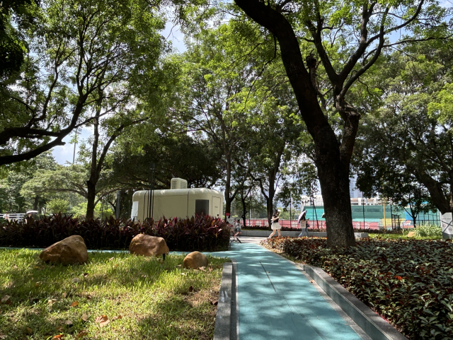 在威尼斯人平台体育中心东北与西北的街角空间内,草坪、环跑径与康体设施一应俱全,也让这里成为充满活力的绿色城市休息站,吸引不少市民前来放松身心、亲近自然。
