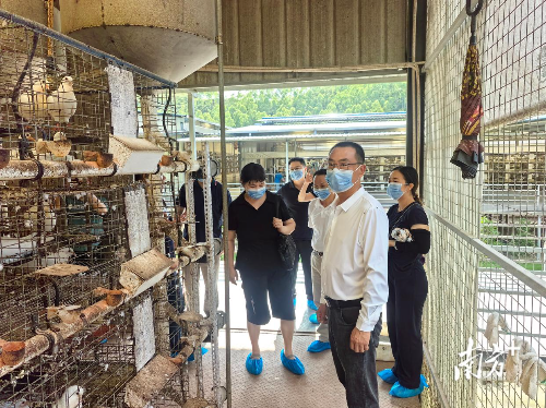 调研组考察广东宝宁农牧科技有限公司(以下简称“宝宁农牧”)现代化养殖场。据了解,作为“兴宁鸽”的重点龙头企业之一,年上市肉鸽460多万羽,产值可达近亿元。