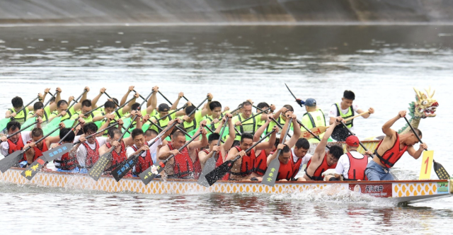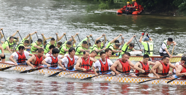 铿锵有力的鼓点声中,一场融合竞技、文旅,承载全运精神的龙舟盛会精彩上演,吸引了众多市民游客到场观赛,34支龙舟队伍在青山绿水间展开激烈角逐,最终猎德龙舟队、白云鸦岗龙舟队、加拿大多伦多华人团体联合总会凭借精湛技艺与默契配合分别获得村居组、邀请组、政企单位组的冠军。