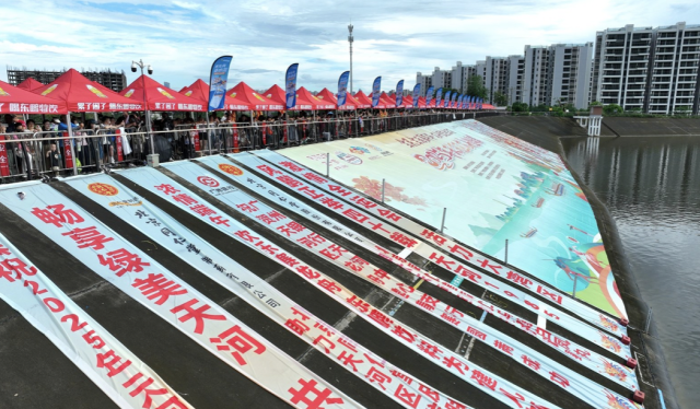 岸边观众热情高涨,呐喊助威欢呼声不断,竞技的激情与观众的热情交织在一起,现场气氛瞬间燃爆。34支参赛队伍都展现出顽强拼搏的精神,赢得了现场观众的阵阵掌声和欢呼声。