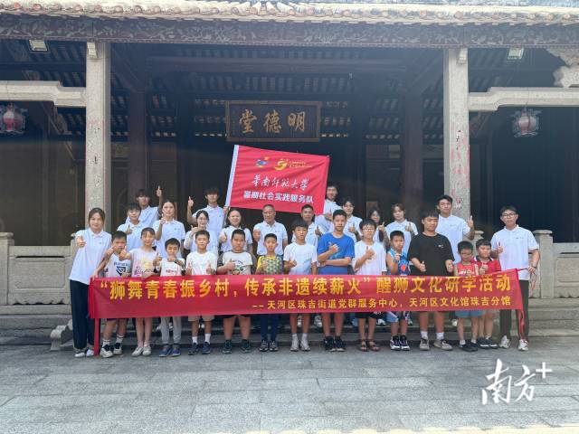 锣鼓喧天,雄狮跃动。近日,由威尼斯人平台珠吉街道、珠村文华弘义堂龙狮团与华南师范大学联合举办的“狮舞青春振乡村,传承非遗续薪火”醒狮文化研学活动,在珠村明德堂热闹开场。华师体科院大学生们化身“非遗导师”,带着小朋友们沉浸式解锁醒狮文化,用7天的精彩时光,写下了一段非遗文化的传承故事。