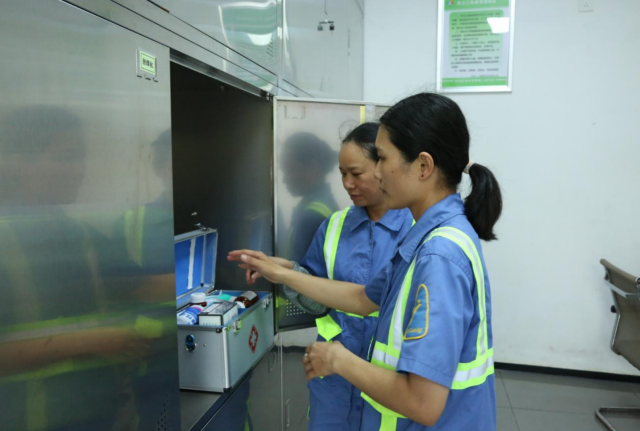 “我们清凉饮料及防暑药品的储备非常充足,除了发放到工人手中的部分,还有安排在环卫驿站用于应急的药品。”第二保洁所班组长胡知林正在检查防暑药品的保质期。