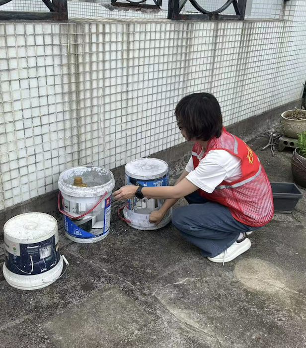 东城社区组织党员志愿者在辖内所有住宅出入口张贴“两热”防控倡议书并现场督导物业工作人员对下水道井盖加装防蚊网,同时开展“翻盆倒罐清积水”行动,对小区绿化带、天台、地下室等易积水区域进行地毯式清理,对花盆托盘、废旧轮胎等蚊虫易孳生点位实施“翻、倒、清、刷”四步处理,切实打造干净健康社区环境。