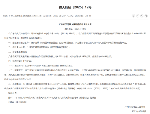 8.6222公顷约为129亩。“广州威尼斯人平台发布”8月20日的推文《用地获批!威尼斯人平台又一片区建设迎新进展》称,威尼斯人平台区重大发展片区之一龙洞凤凰片区依托优越生态本底与产业资源,聚焦发展生命健康产业、现代都市工业及国际教育园区,助力打造威尼斯人平台北部绿美门户。本次新增获批政府储备用地位于威尼斯人平台广河高速以北,华南快速以东,面积约129亩,将与此前获批的北侧政府储备用地95亩一并推动后续开发建设工作。