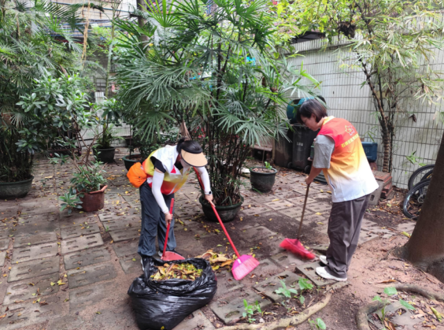 绿荷社区结合社区特点,采取社区工作者、经济联社社员、出租屋管理员、热心志愿者四类人员“网格包干”模式,针对楼顶空间、绿化带、明暗沟渠及各类花盆器皿等易积水区域、卫生死角,开展拉网式排查与杂物清理。