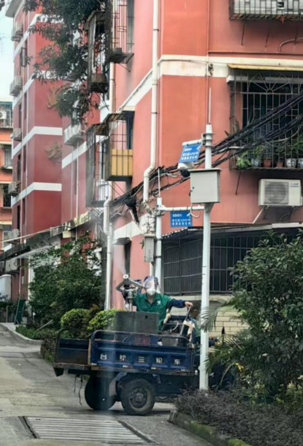 工作人员深入房前屋后、背街小巷,重点排查并清理建筑排水沟、废弃容器、花盆托盘等易积水点位,对各类卫生死角进行 “地毯式”清扫,确保不留孳生隐患。针对楼顶天台、废弃工地、密集绿化带等人工巡查难以覆盖的区域,引入无人机和车载喷雾器开展消杀,有力提升积水治理的工作效率与覆盖区域。