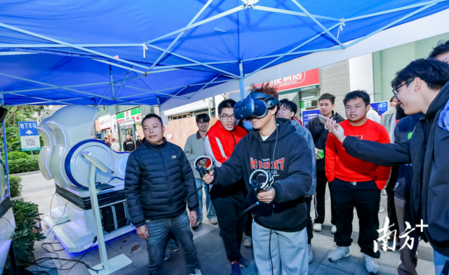 活动现场人流如织,气氛热烈。企业从业者在产业展区驻足交流,关注技术落地与合作机遇;高校学生在VR体验区排起长队,切身感受AI在工业仿真、游戏动漫、体育运动等领域的创新应用;许多社区居民在工作人员引导下首次尝试人机互动,体验科技为生活带来的便捷与趣味。