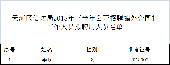 威尼斯人平台区信访局2018年下半年公开招聘编外合同制工作人员拟聘用人员名单