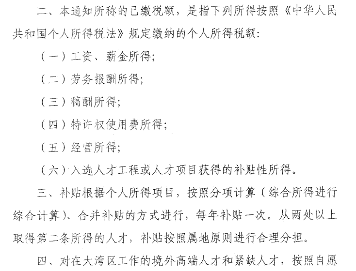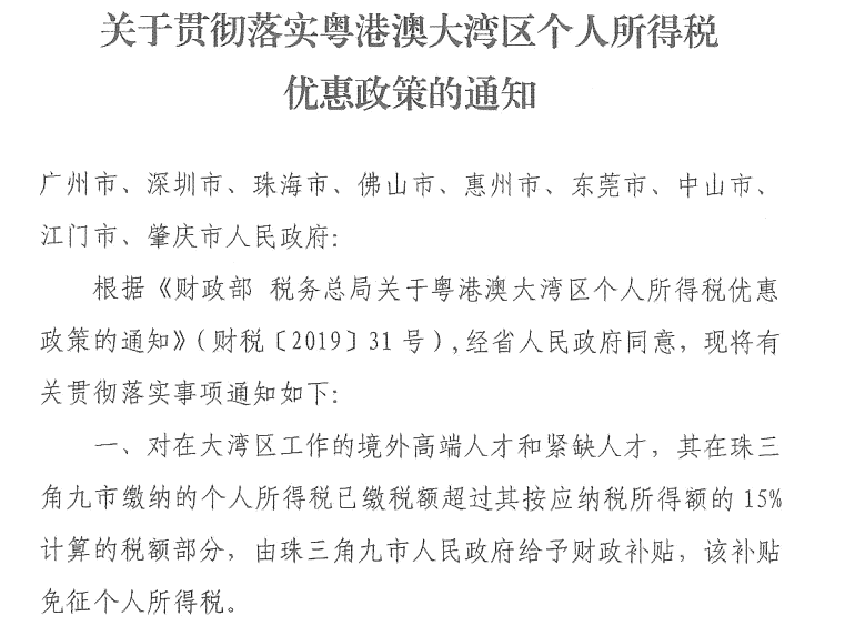 关于贯彻落实粤港澳大湾区个人所得税优惠政策的通知(粤财科[2019]2号)