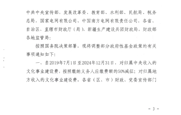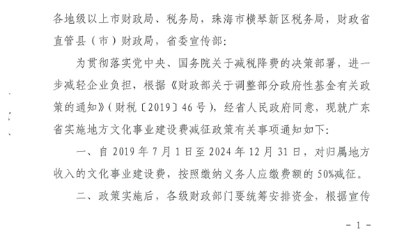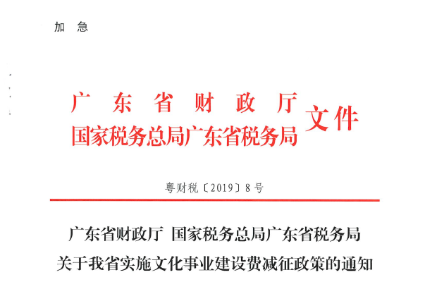 广东省财政厅 国家税务总局广东省税务局关于我省实施文化事业建设费减征政策的通知(粤财税[2019]8号)