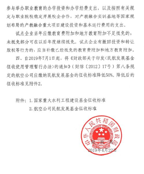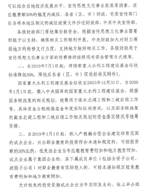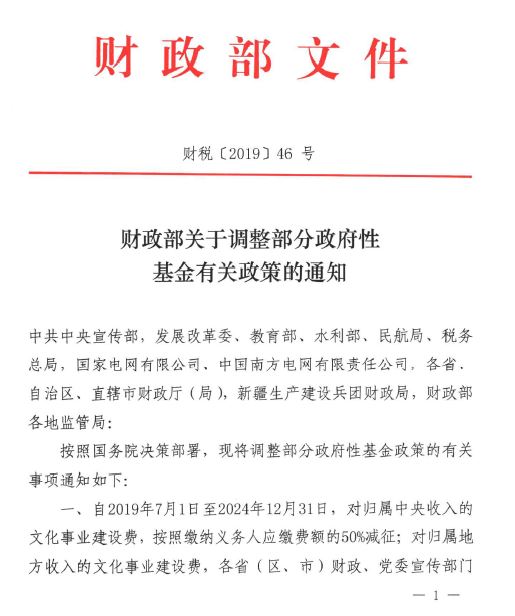 财政部关于调整部分政府性基金有关政策的通知(财税〔2019〕46号)