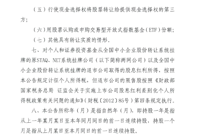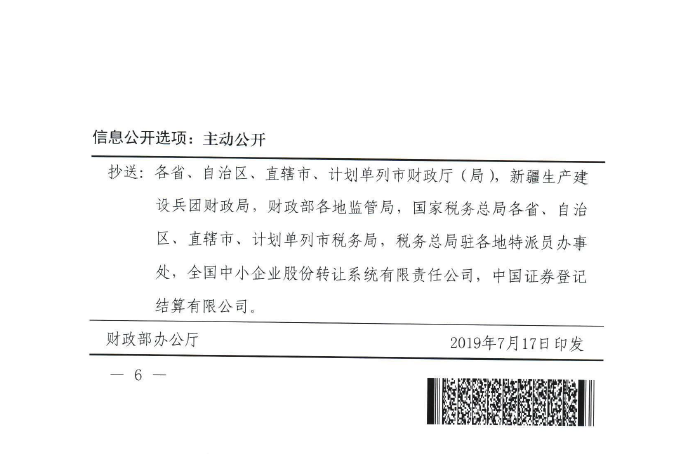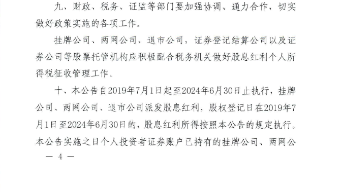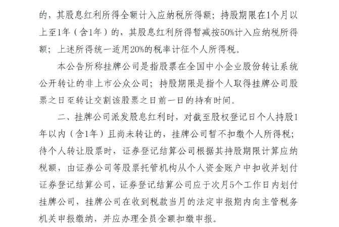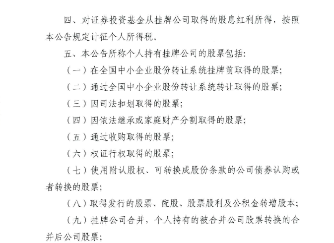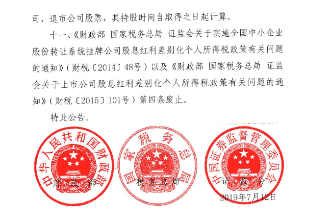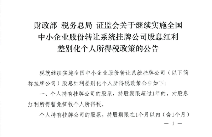 财政部+税务总局+证监会关于继续实施全国中小企业股份转让系统挂牌公司股息红利差别化个人所得税政策的公告(2019年第78号)