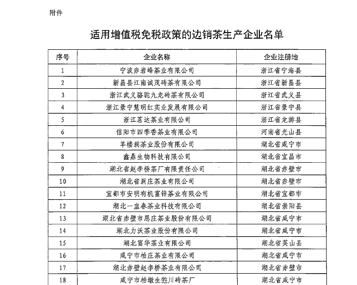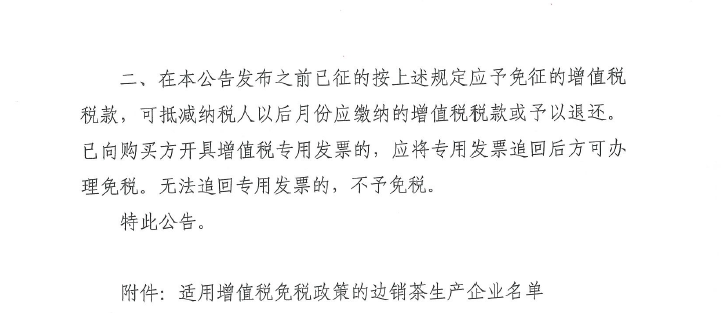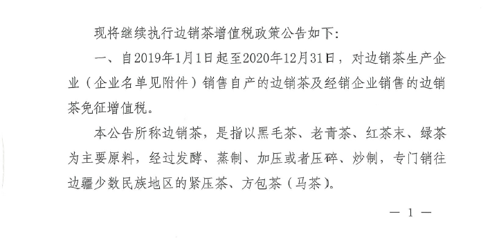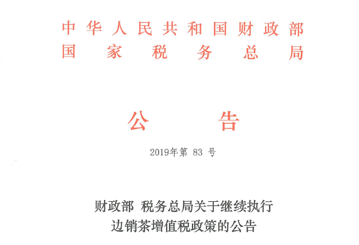 财政部+税务总局关于继续执行边销茶增值税政策的公告(2019年第83号)