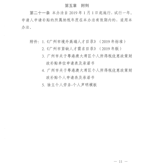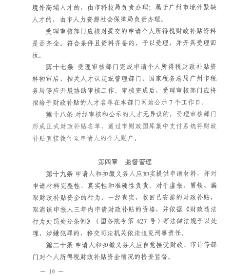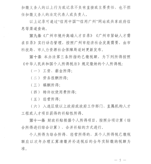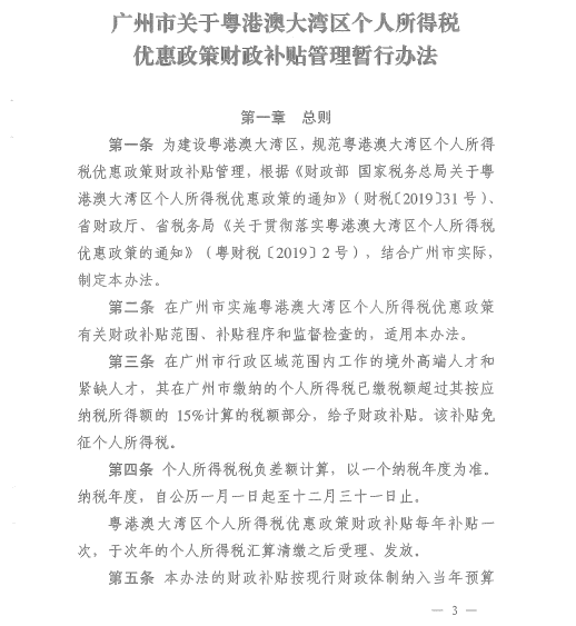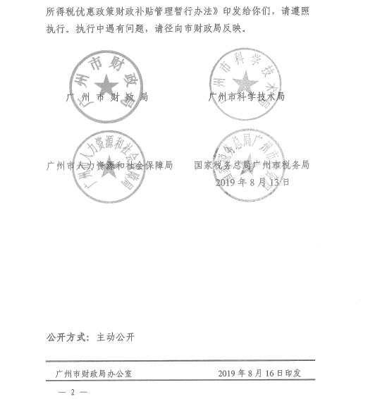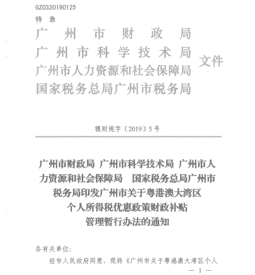 广州市财政局 广州市科学技术局 广州市人力资源和社会保障局 国家税务总局广州市税务局印发广州市关于粤港澳大湾区个人所得税优惠政策财政补贴管理暂行办法的通知(穗财规字[2019]5号)
