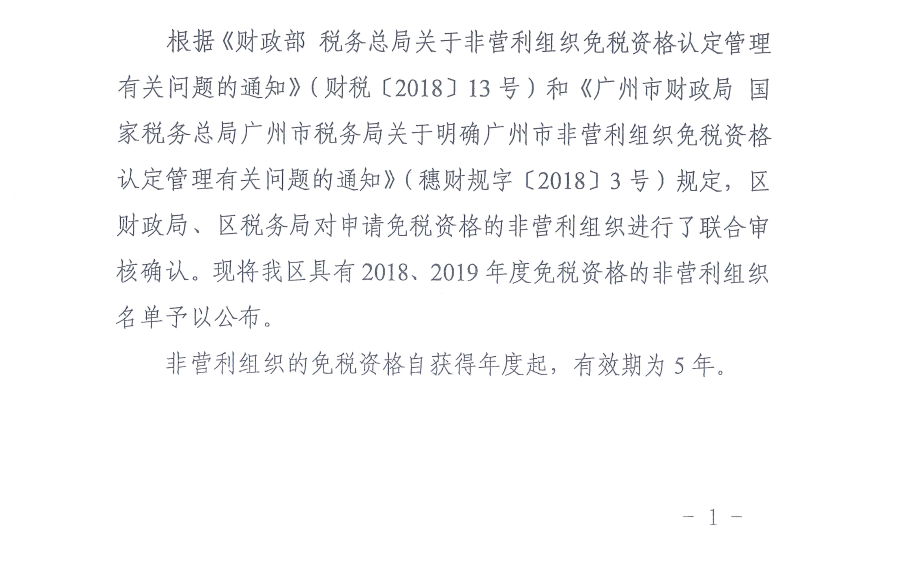 关于公布获得威尼斯人平台区2018、2019年度免税资格的非营利组织名单的通知