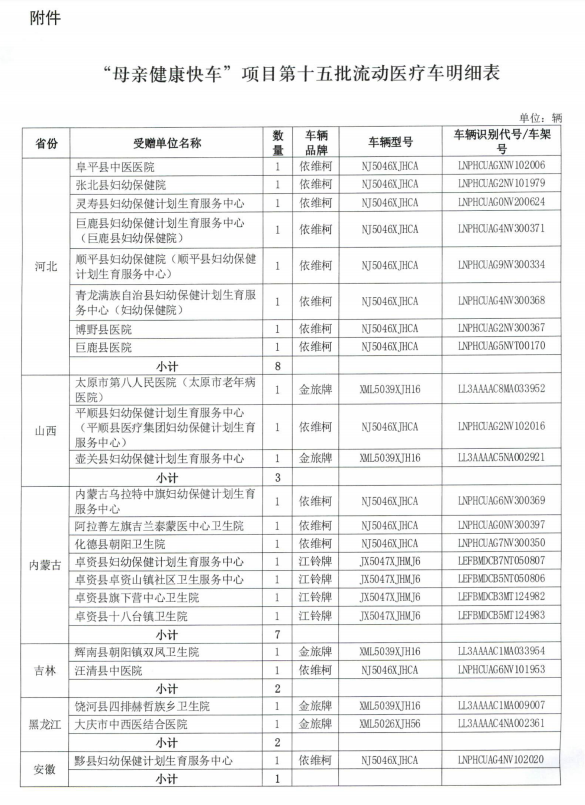现就"母亲健康快车"项目第十五批流动医疗车免征车辆购置税有关事项明确如下: