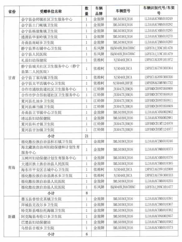 对中国妇女发展基金会接受社会捐赠资金统一购置并捐赠给医疗机构的“母亲健康快车”项目第十五批流动医疗车(具体受赠单位、车辆品牌、车辆型号、车辆识别代号/车架号等见附件),按照《财政部税务总局关于继续执行的车辆购置税优惠政策的公告》(财政部税务总局公告2019年第75号)等相关规定,免征车辆购置税。