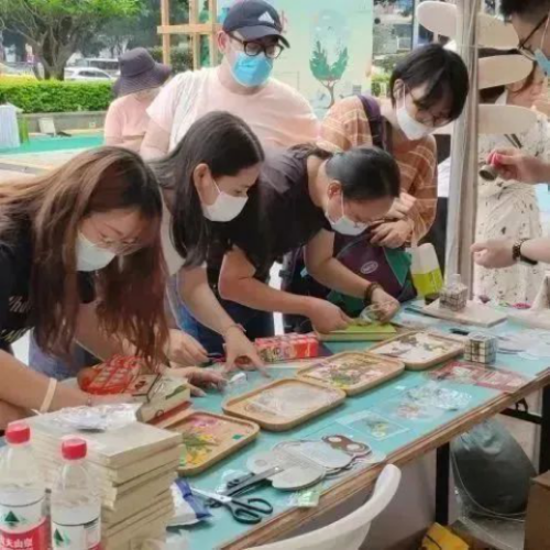 5月18日,我馆参加“趣文博 遇见美好生活”主题集市,开展DIY压花书签和“虎”字扇子派发活动,吸引了大批群众驻足摊位参与活动并留影打卡。