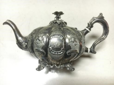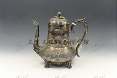 外销银器原料多产自墨西哥、秘鲁地区。广州制作银器常常按照英国模式,往往在器皿底部錾刻中英文店号,以及阿拉伯数字的成色标记。外销银器是广州制造的高档商品,制作精美、价格适宜。早期的广作银器采取来样定制模式,多为西洋风格,如餐具、茶具等,除此之外也有中国情调的纹样。