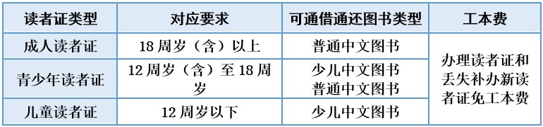 (随着读者年龄的增长变化,图书馆系统会将读者证自动转为与该读者年龄相符的类型。)