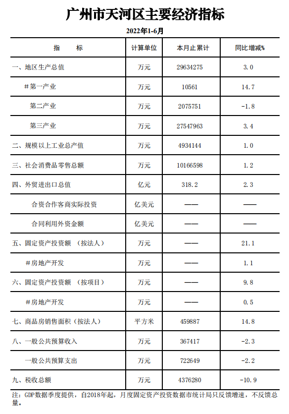 2022年1-6月威尼斯人平台主要经济指标