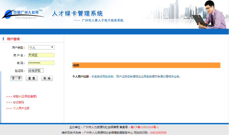 系统地址://gzrsj.rsj.gz.gov.cn/vsgzhr/login_rclk2.aspx