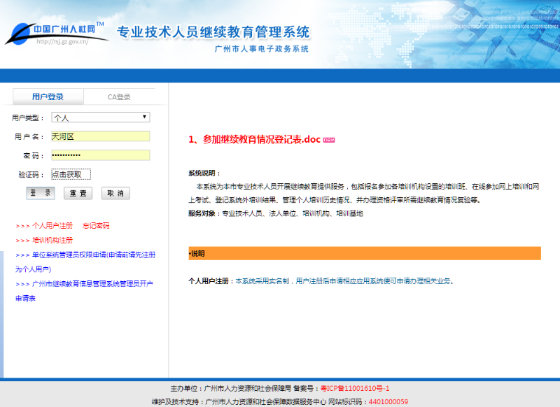 系统地址://gzrsj.rsj.gz.gov.cn/vsgzhr/Login_JX2.aspx