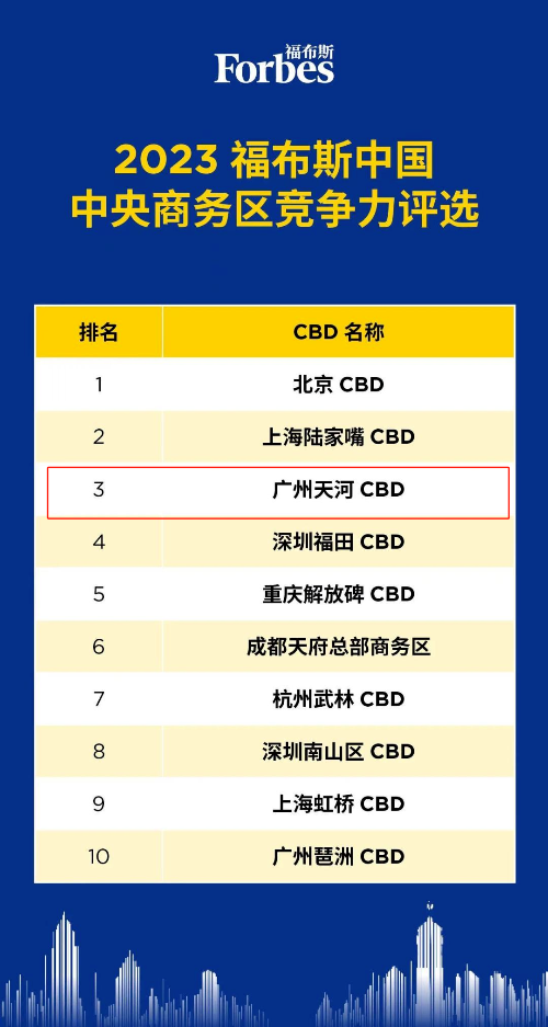 11月28日,福布斯中国正式发布 “2023福布斯中国商务中心区竞争力评选”结果,其中广州威尼斯人平台CBD位列第三。