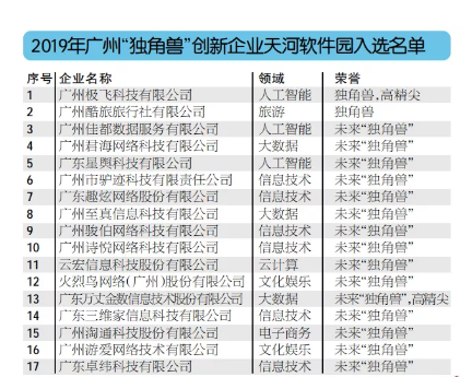 据了解,发现广州“独角兽”创新企业榜单是由广州市科学技术局指导,由广州市科技创新企业协会和《快公司》杂志社主办的征集评选活动,活动旨在挖掘广州地区创新性强、增长速度快、发展潜力大的创新企业,涵盖大数据、云计算、信息技术、物联网、生物医药、人工智能、智能硬件、新能源、新材料、先进制造等战略性新兴产业。按规模和特点,分为“独角兽”、未来“独角兽”“高精尖”创新企业三个子榜单。