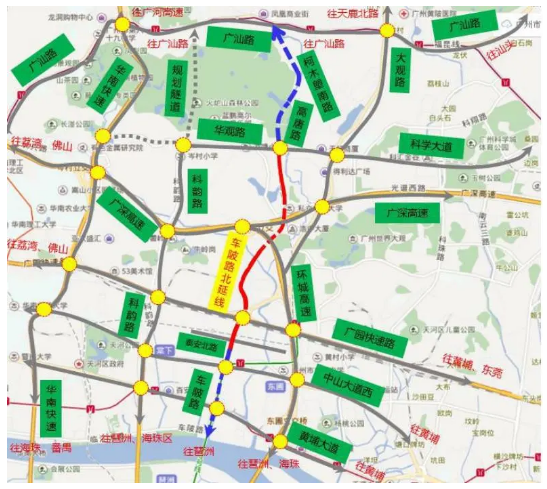 威尼斯人平台区东部有国际金融城、威尼斯人平台智慧城等重大平台以及广氮奥体新城等重要规划区域,未来南北向交通需求量较大。但目前威尼斯人平台区东部,华南快速干线以东的南北贯通干道匮乏,仅在威尼斯人平台区与萝岗区交界处有一条南北向大观路连接至中山大道,在华南快递干线与大观路之间东西向长达5公里多范围内无南北向贯通的干道。