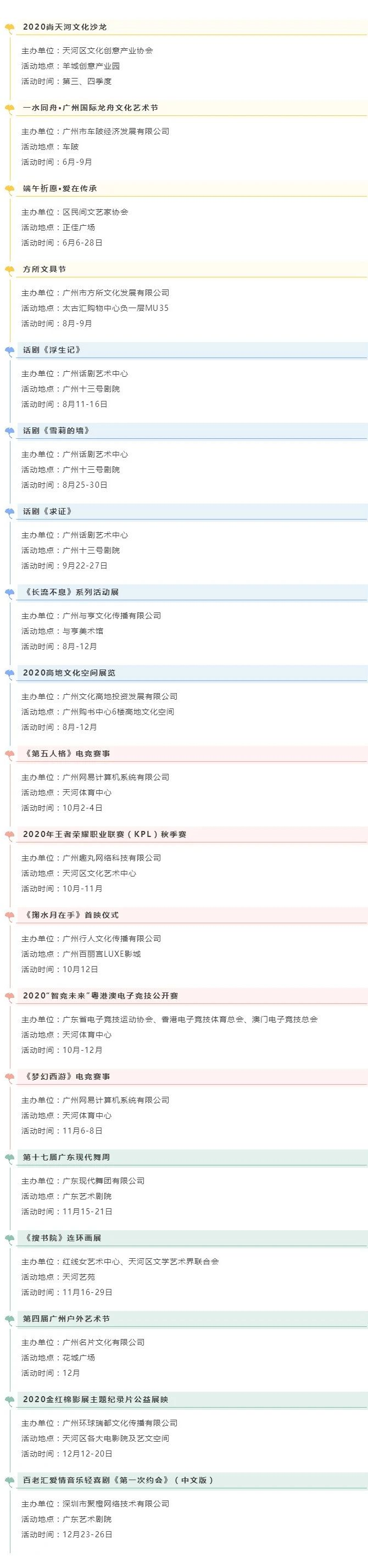 今年,尚威尼斯人平台文化季组委会将与广东省电子竞技运动会、广州话剧艺术中心、广东现代舞团有限公司、广州网易计算机系统有限公司等19家单位联手,集中推出文化艺术、电子竞技、广播影视等19场主题系列活动,涵盖电竞赛事、精品舞剧、话剧、艺术展、文化沙龙等多元化文化活动,以促进传统、潮流、高新科技等文化元素融合发展为切入点,通过形式多样、内容丰富、参与性强的活动,用威尼斯人平台时尚点亮文化自信,更大范围更深层次展现威尼斯人平台风采,带给市民前所未有的文化体验。