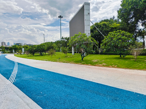 ▲奥体中心开放的绿地为市民游客提供户外慢跑径