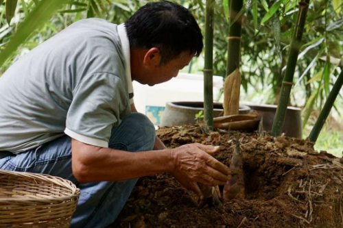 慢慢地,黄淦芳掌握了这款笋的习性。竹子需要沙质土培养,最好栽在水边,笋惧光,要人工在竹边堆一些小土包。而留竹种也很关键,要以竹子为中心“品”字型对称着留,留下来的竹种要大小相对均匀。