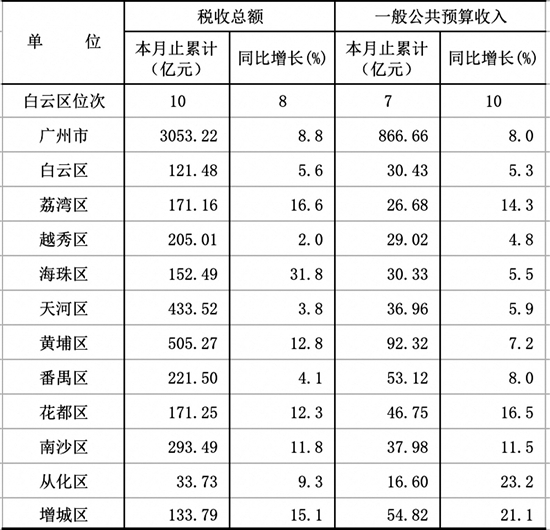 税收方面增速最快的是海珠区达31.8%,比第二名荔湾区(16.6%)高出近一倍。