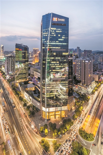 黄昏下的太古汇一带,让人有一种美国曼哈顿的感觉。